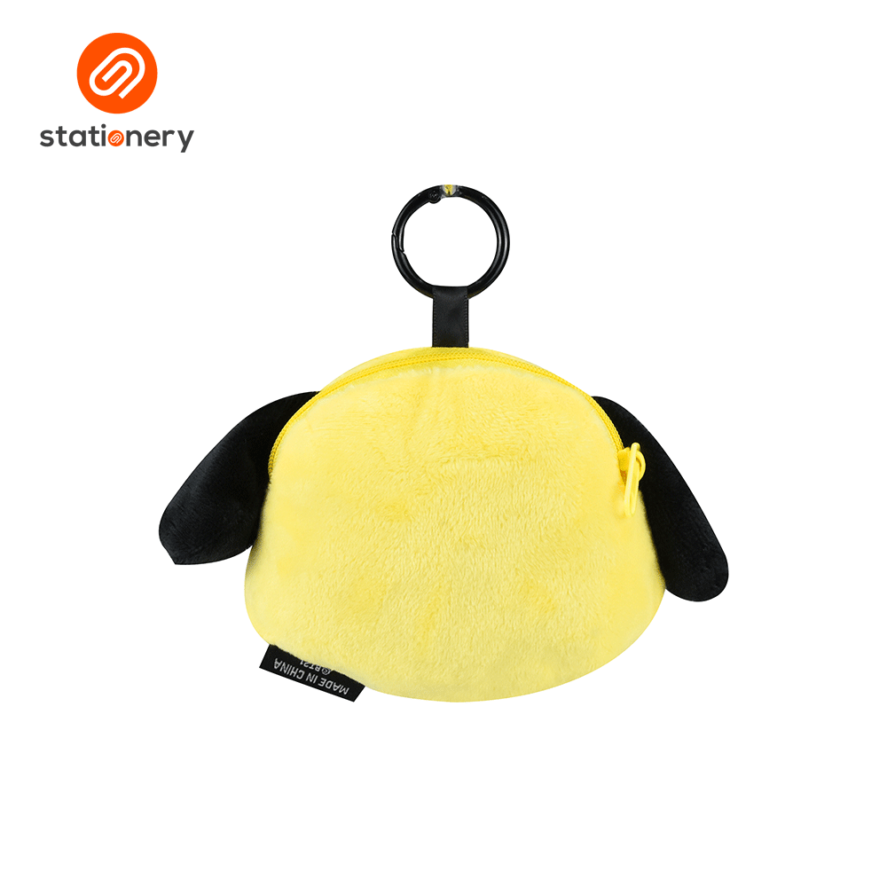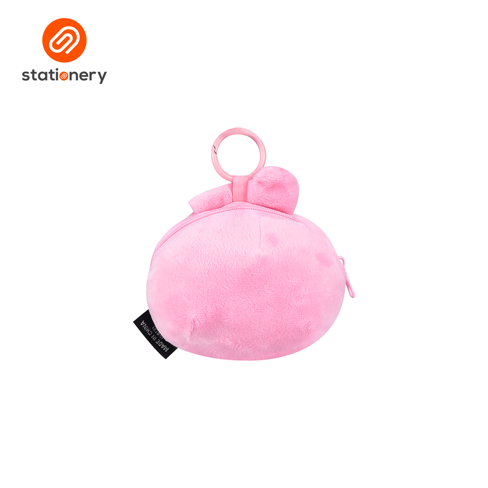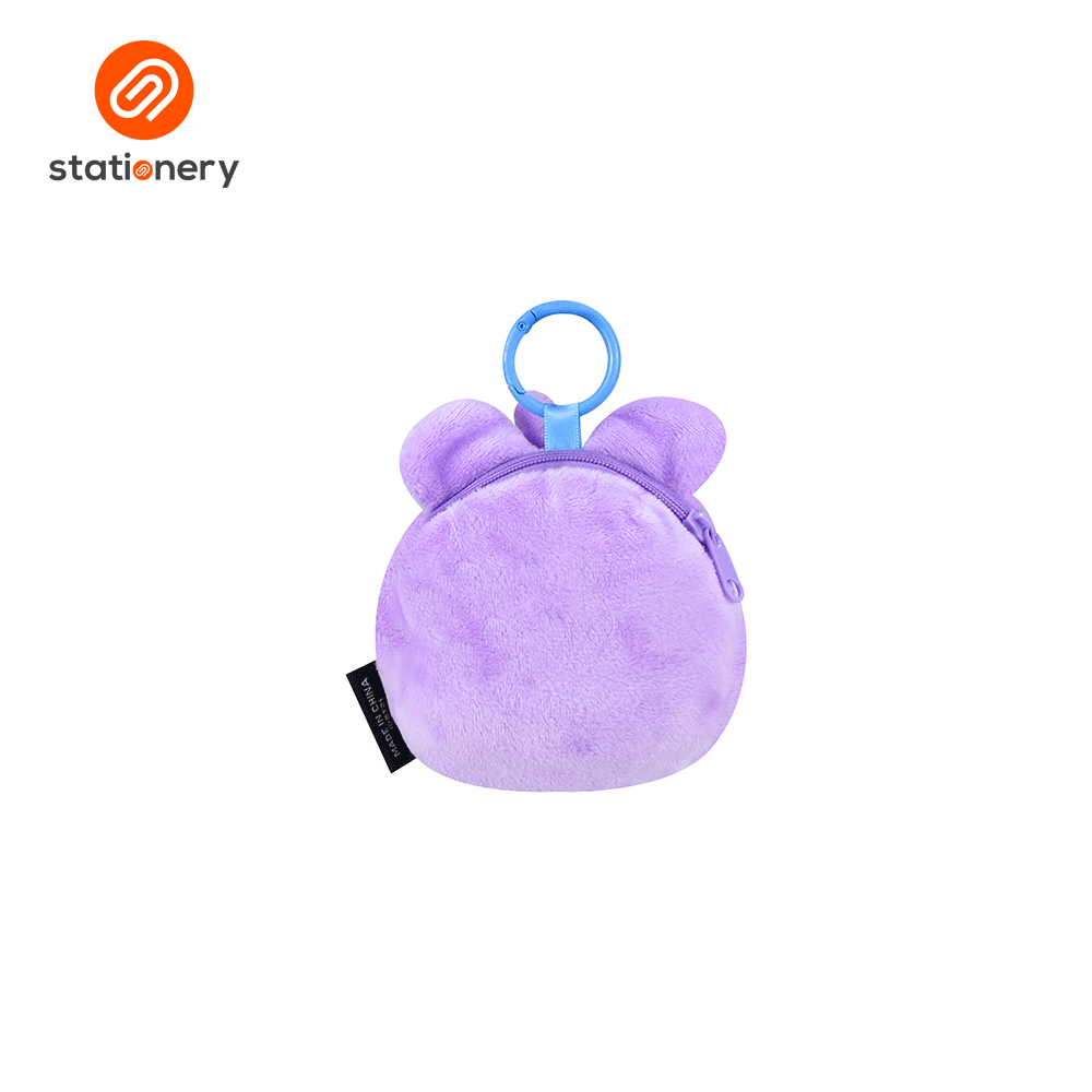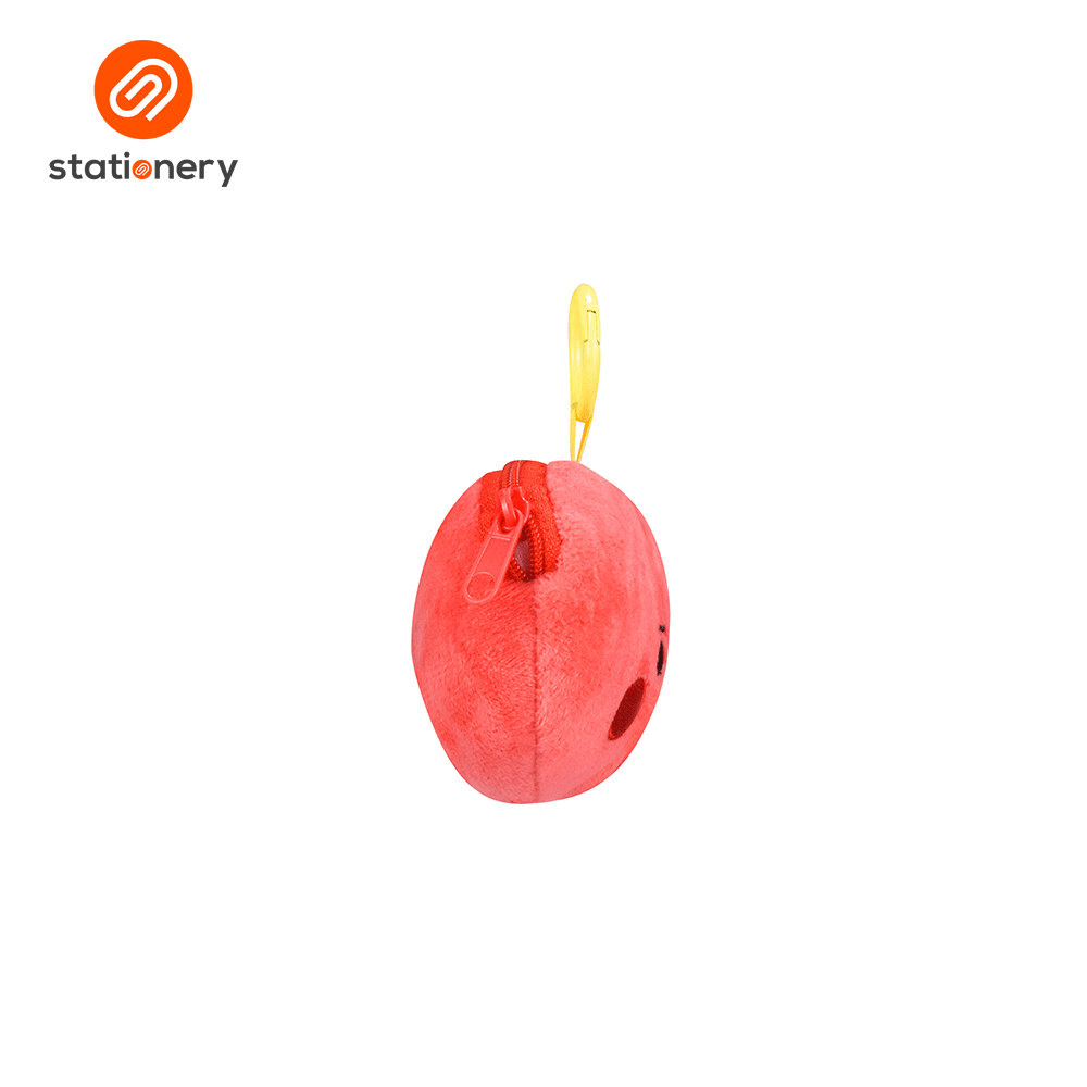 This is a small, plush, round coin purse that comes with a keychain holder.