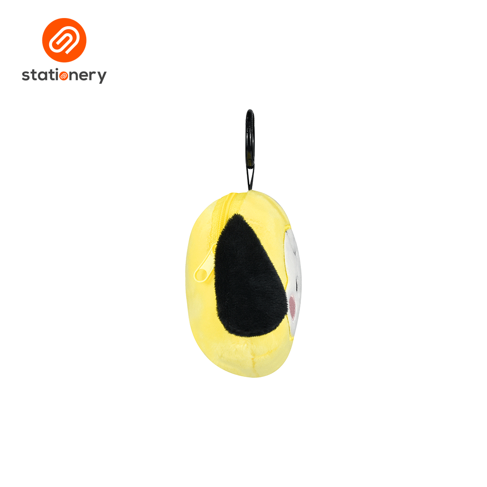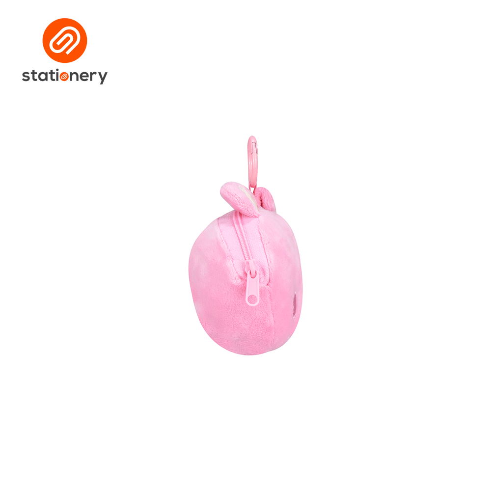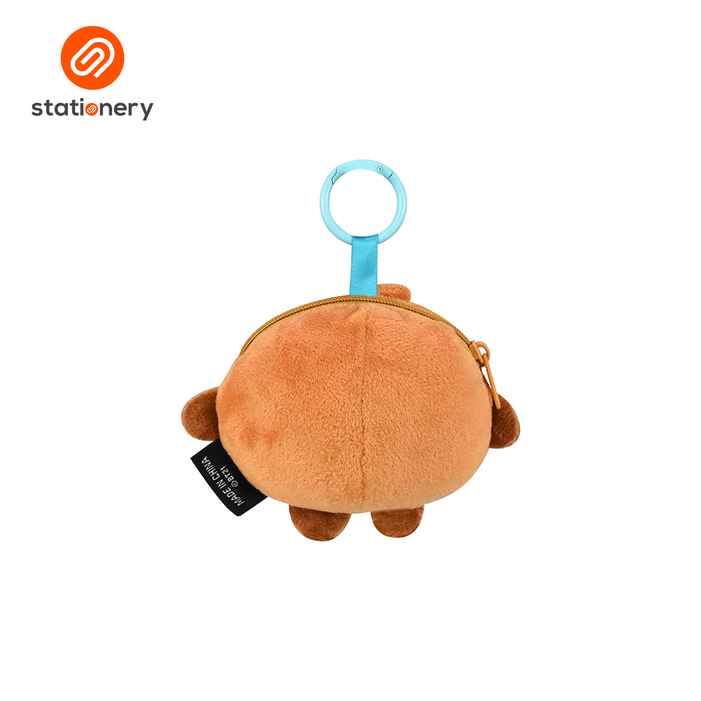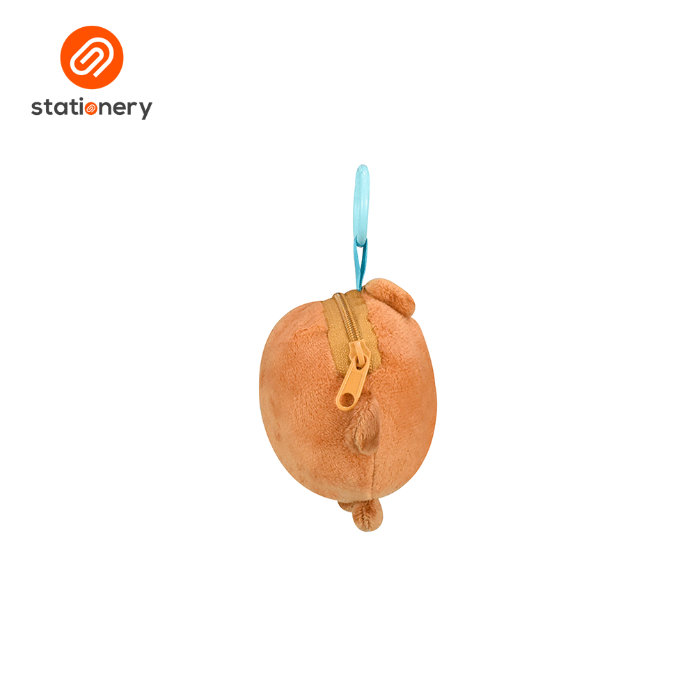 This is a small, plush, round coin purse that comes with a keychain holder.
