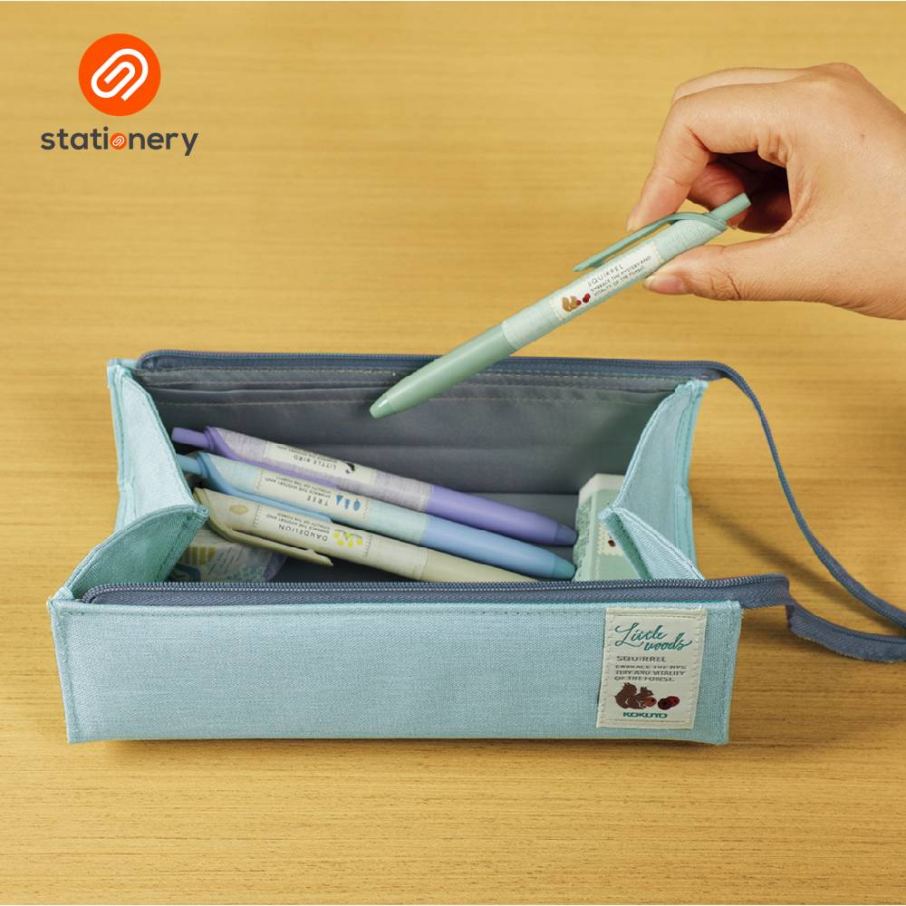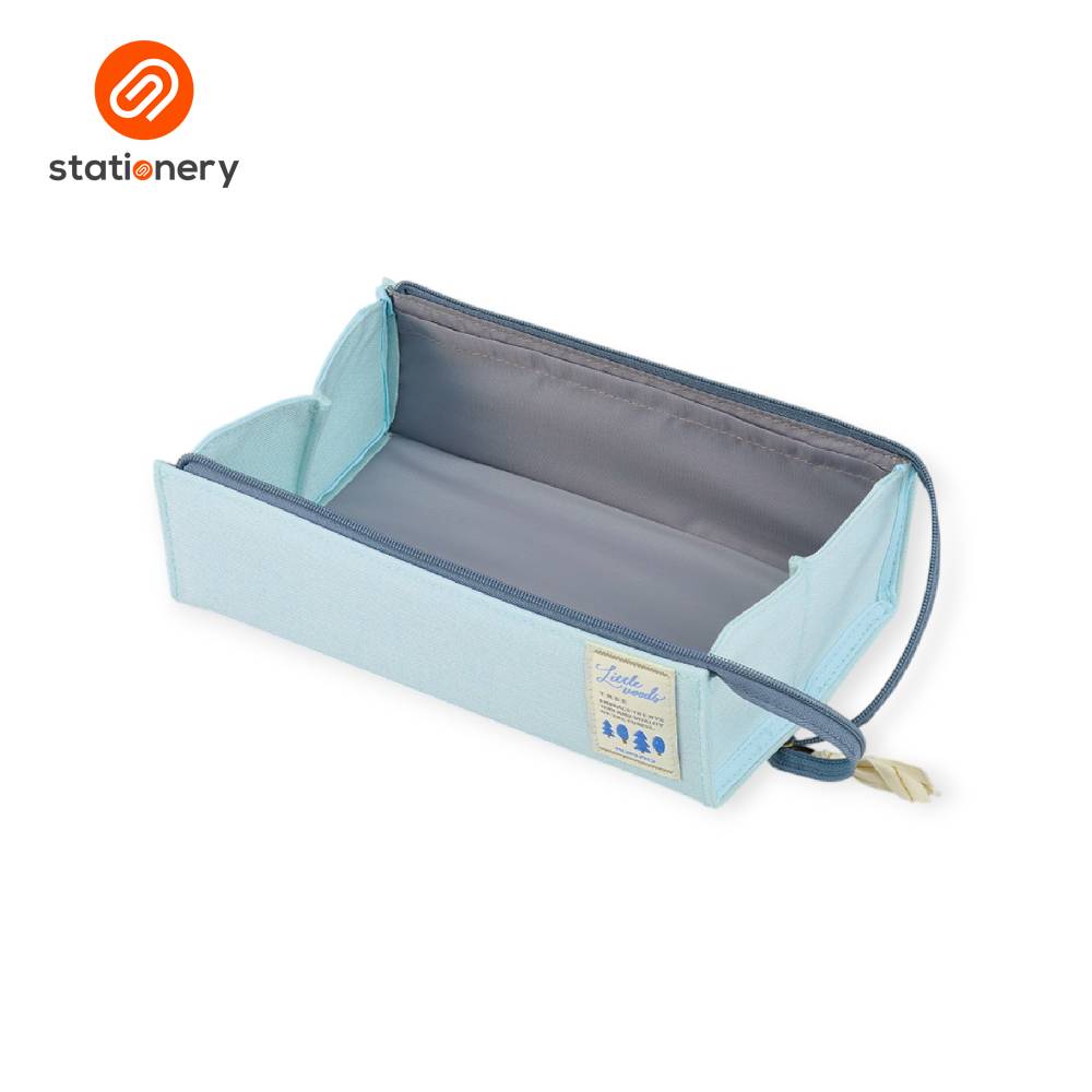 The pen case turns into a pen tray!/You can view its contents and offers convenience when retrieving small items, such as erasers or mechanical pencil lead.