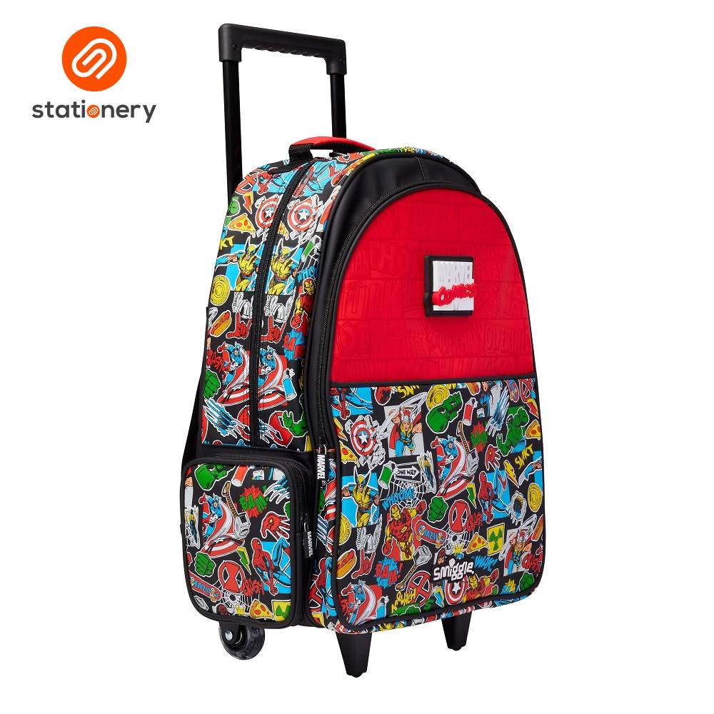 Smiggle Marvel Trolley Backpack With Light Up Wheels - Black