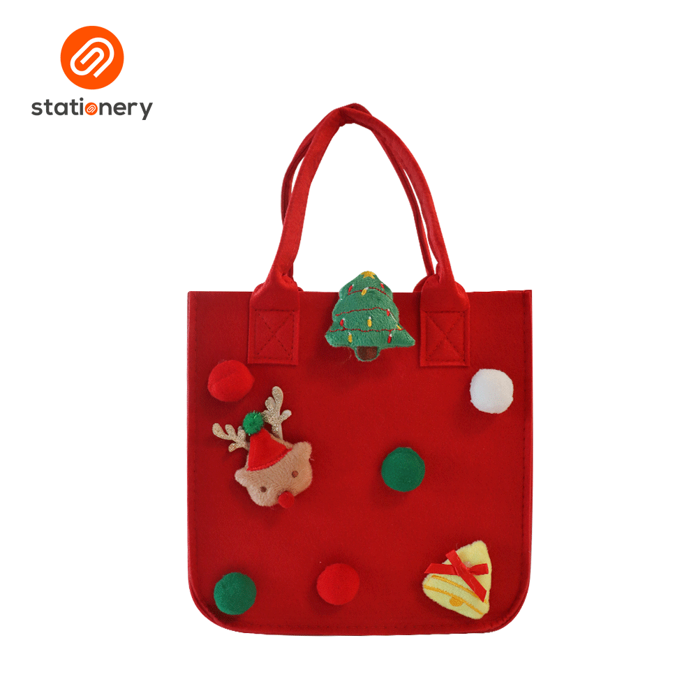 - This funny Christmas goodie bags are made of felt, decorated with cute plush stuffed Cloth doll such as Santa Claus, Christmas trees, elk, boots, etc. sturdy lightweight and durable, reusable and have a certain weighing capacity, not easy to fade or tear, which can serve you for a long time.