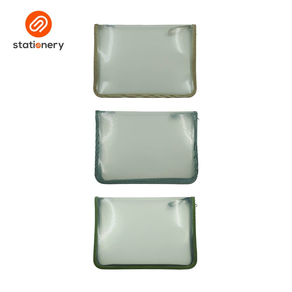 A4 clear plastic envelopes with colored piping are typically made of durable, transparent polypropylene (PP) material and feature a snap-button or string closure to secure documents. The colored piping is primarily an aesthetic feature that also adds durability to the edges.