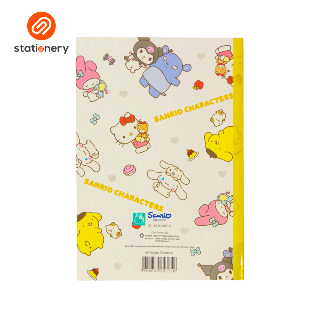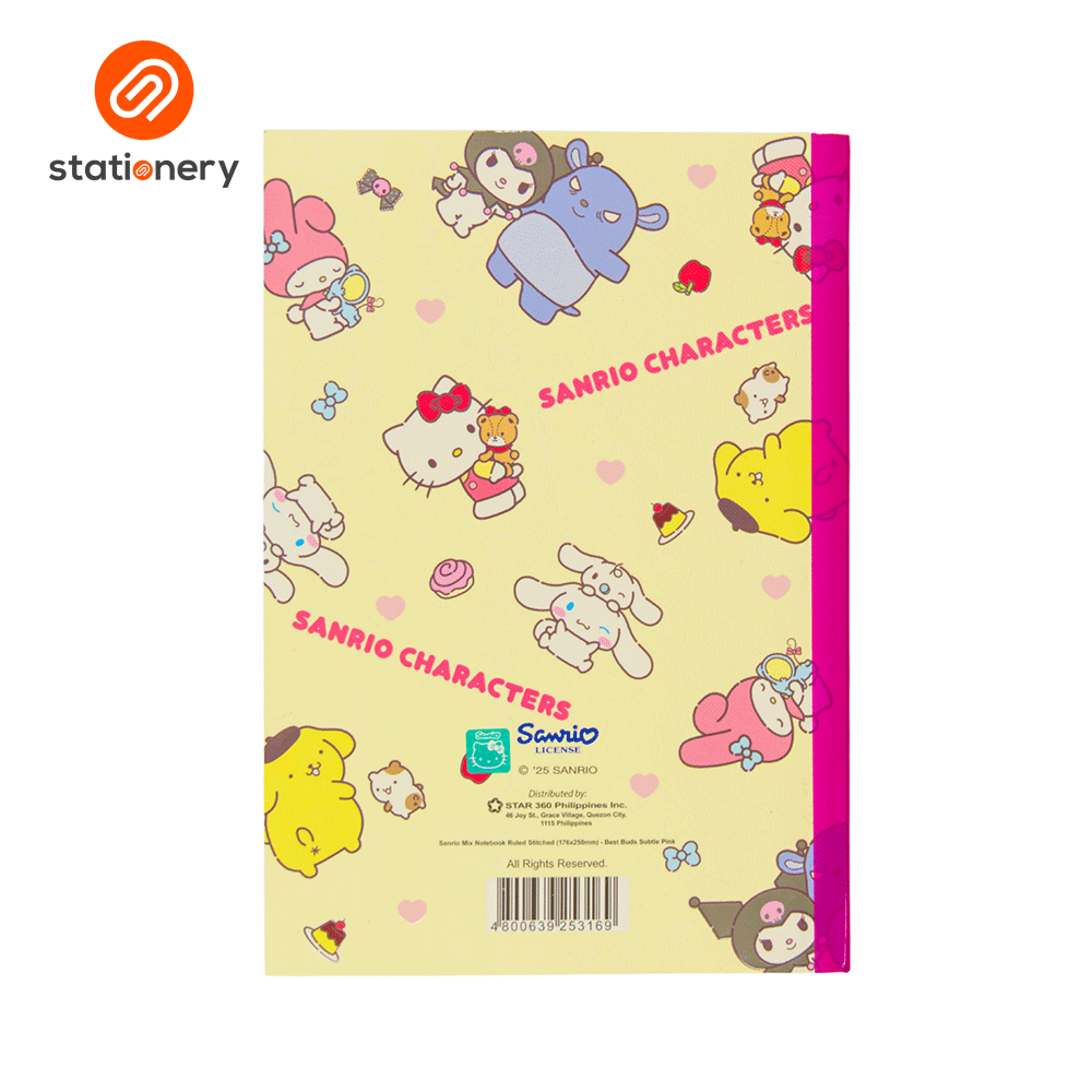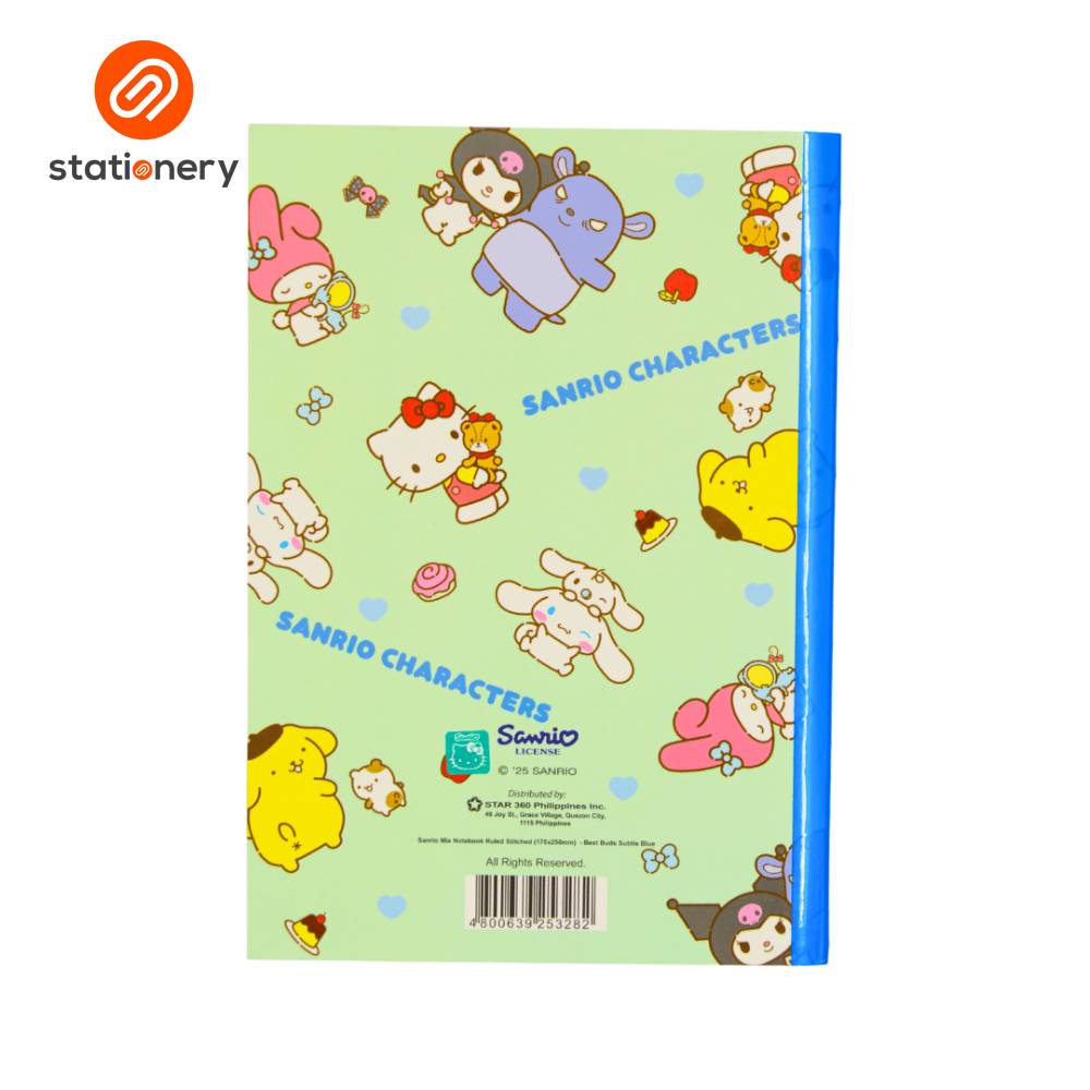 Sanrio Mix Notebook Ruled Stitched (176x250mm) - Best Buds Subtle