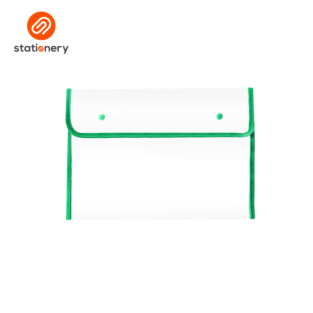 The Seagull Plastic Envelope with 2 Snap Buttons and Piping is a large, A4-sized document holder made of durable, transparent polypropylene (PP). The 0.2mm thick envelope is designed to protect and organize your documents, with a twin snap-button closure to keep your contents secure.